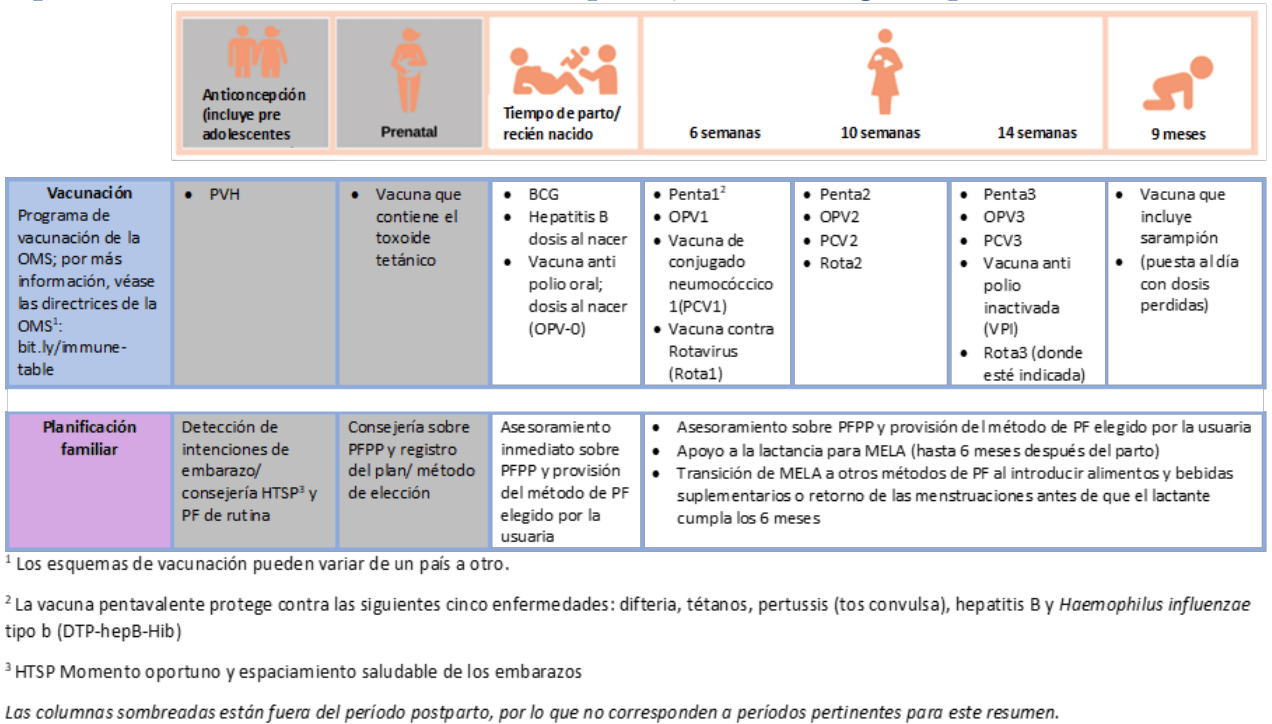 Oportunidades de integración de la planificación familiar en diferentes instancias de contacto motivadas por la vacunación desde antes de la concepción y todo a lo largo del primer año de vida.