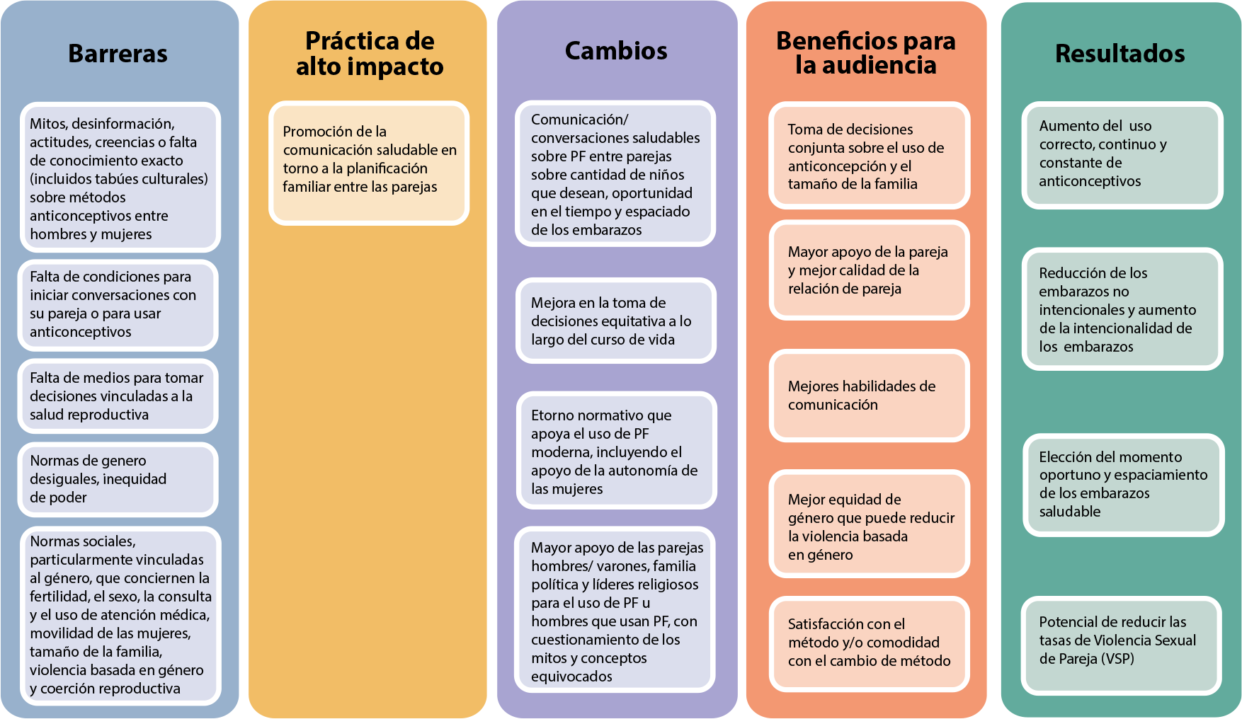 Prácticas de alto impacto en materia de planificación familiar (PAI). Promover una comunicación sana entre los miembros de la pareja para mejorar los resultados de salud reproductiva. Washington, DC: HIP Partnership; Abril 2022. Disponible en: https://staging.fphighimpactpractices.org/briefs/couple-communication/