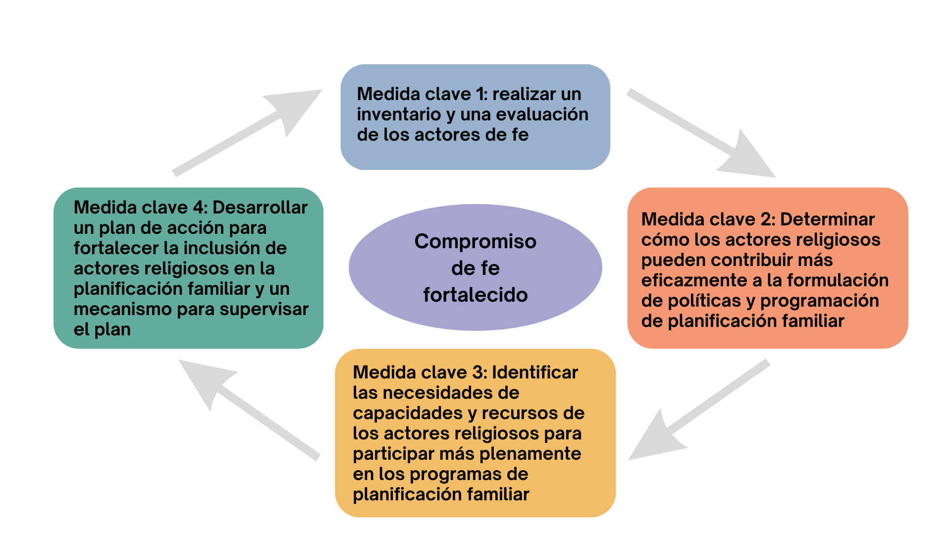 • Incluya el análisis de las fortalezas y la capacidad de los actores religiosos en materia de planificación familiar (por ejemplo, ellos no solo aportan sus fes o creencias religiosas; también aportan conocimientos técnicos y médicos para atender a la comunidad).