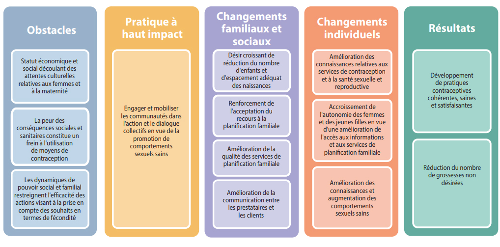 Promotion de comportements positifs en termes de santé sexuelle et reproductive par le biais de l'engagement et de la mobilisation des communautés : Théorie du changement