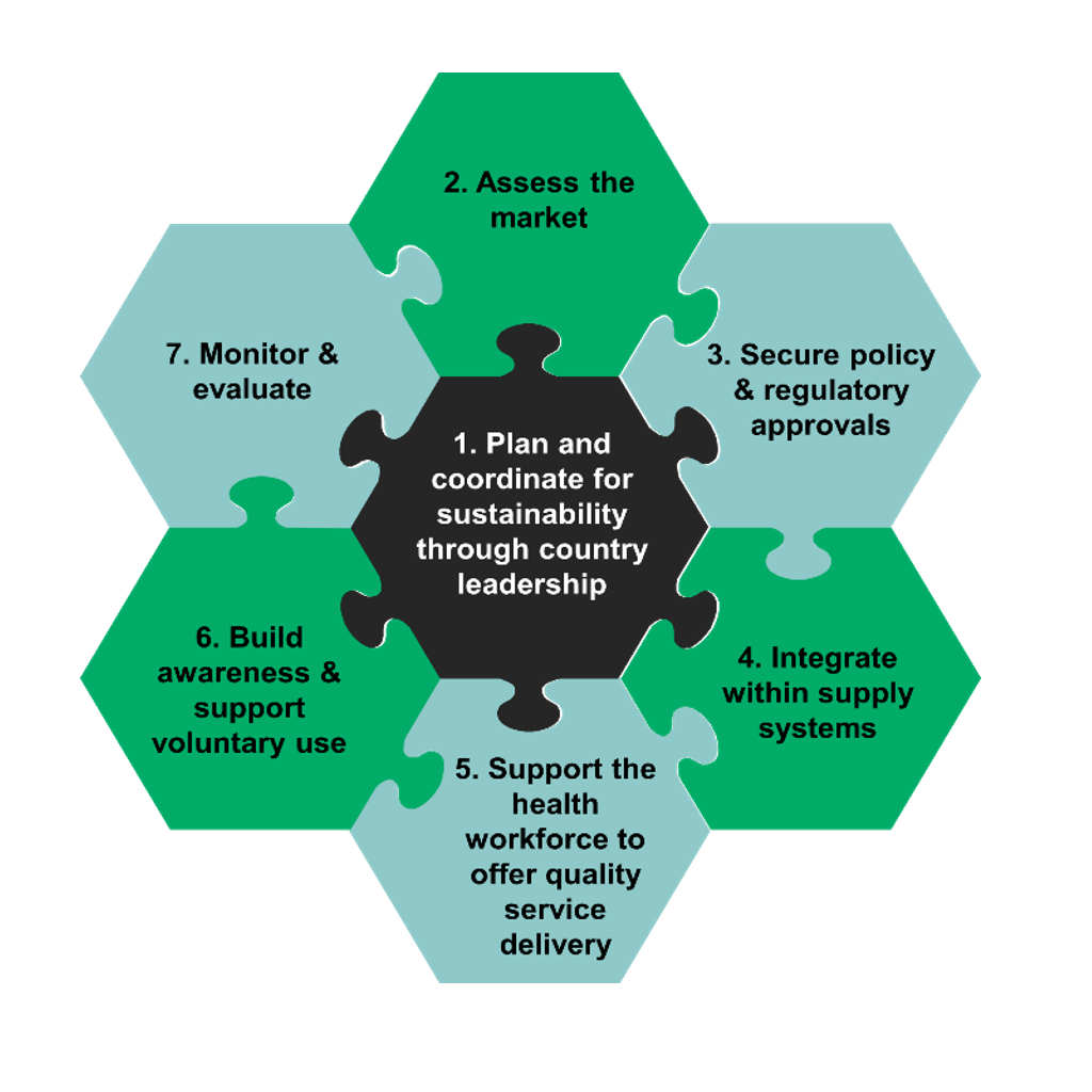 This Strategic Planning Guide is intended to lead program managers, planners, national policy makers, and other stakeholders through a strategic process to coordinate the introduction of contraceptive methods through public and private access channels. The guide was developed through consultation with technical experts and summarizes guidance from key resources for method introduction. It provides an overview and links to other resources for more depth and detail. Successful contraceptive introduction efforts typically include the seven elements in Figure 1. These elements are not listed as linear steps because the process is often iterative; revisiting and adapting approaches is often necessary to set the stage for scale-up.