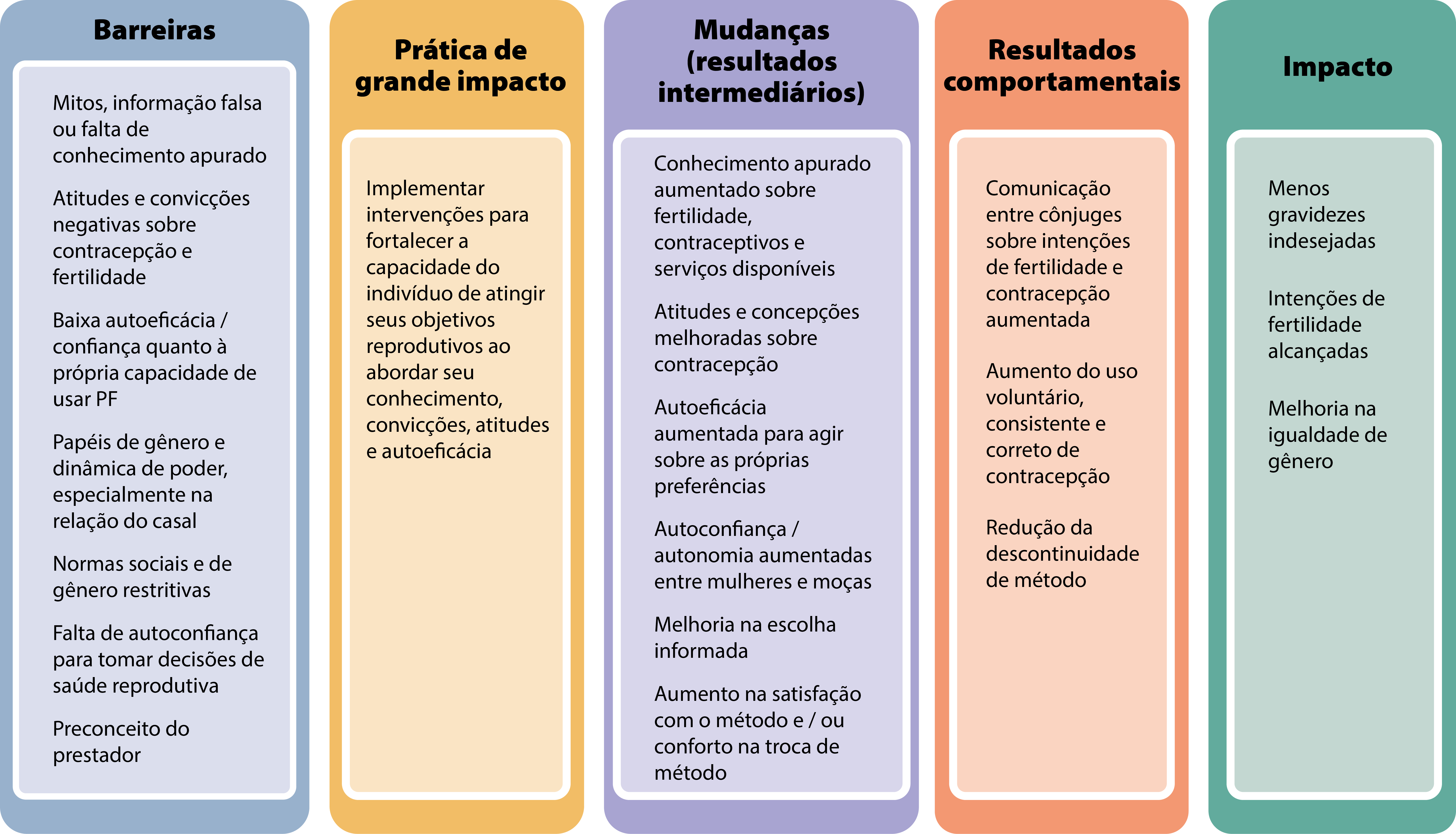Práticas de Grande Impacto no planejamento Familiar (PGIs). Conhecimento, convicções, atitudes e autoeficácia: fortalecendo a capacidade do indivíduo de alcançar suas intenções reprodutivas. Washington, DC: Parceria PGI; 2022 Maio. Disponível em: https://staging.fphighimpactpractices.org/ briefs/knowledge-attitudes-and-beliefs/